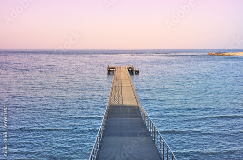 © MaciejBledowski, Obraz premium Empty pier at purple sunset.