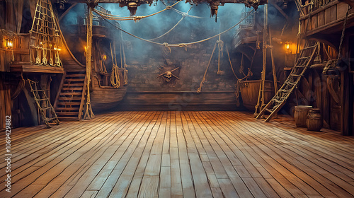 Fototapeta premium empty pirate ship deck background for theater stage scene