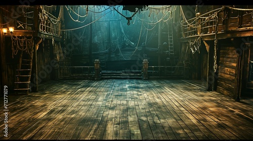Naklejka premium empty pirate ship deck background for theater stage scene