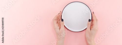 © dvoevnore, Fototapeta premium Empty plate in female hands mockup