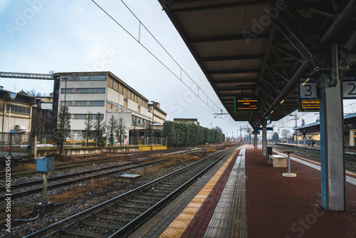 © Giammarco Figus, Obraz premium Empty Platform at Early Morning Train Station