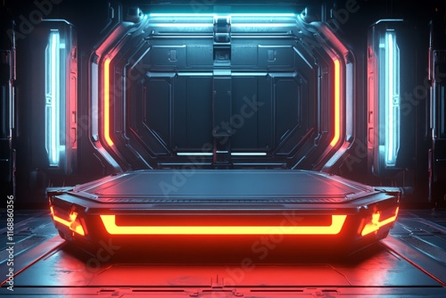 Obraz premium empty podium for product display, in a sci-fi style