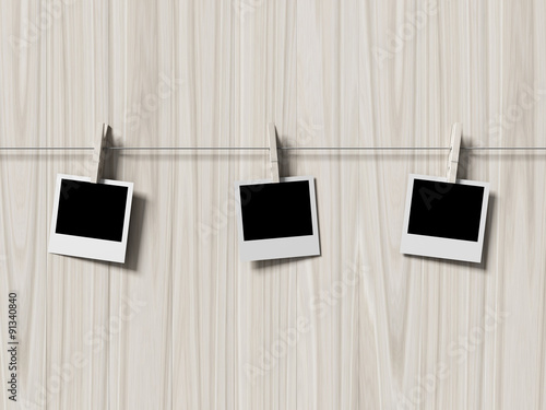 © teerawit, Fototapeta premium empty polaroid photos frames on wood background