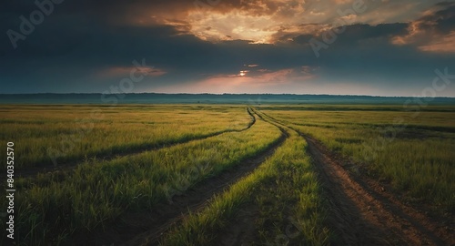 © Arceli, Naklejka premium empty prairie fields landscape banner copyspace background