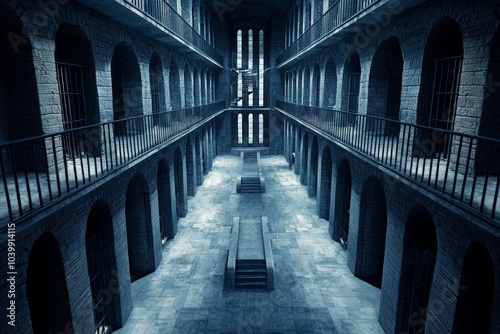 Obraz premium Empty Prison Yard Overhead Shot