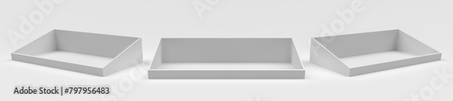 © Stock_Vision, Obraz premium Empty Product Display Tray, PDQ Display. PDQ Display Box With Three Different View. 3D Rendered