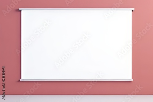 Obraz premium Empty Projection Screen on Pink Wall - Blank Presentation Background