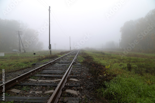 © Сергей Луговский, Obraz premium empty railroad in fog