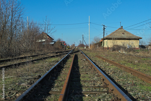 © Zeljko, Obraz premium Empty railroad tracks on a sunny winter day