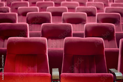 Fototapeta premium Empty red chairs for audience in the theater