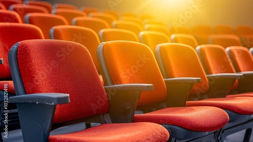 © Anurak, Obraz premium Empty Red Seats in a Stadium.