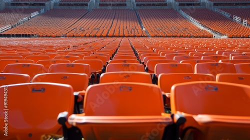 Naklejka premium Empty red seats in the stadium create a rhythmic pattern
