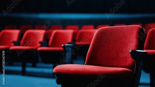 © vlntn, Obraz premium Empty Red Theater Seats in Dramatic Lighting