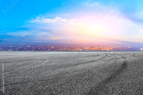 © ABCDstock, Fototapeta premium Empty road and modern city skyline in Shanghai,China