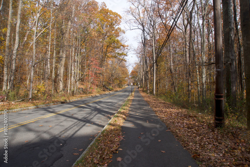 © depaz photolabs, Fototapeta premium Empty Road and Path Through Woods in Late Autumn