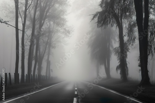 © Arisctur, Obraz premium empty road at cloudy morning, generative ai
