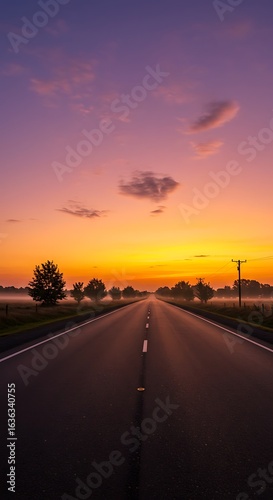© TCyamauti, Naklejka premium Empty road at sunrise symbolizing national rest and reflection