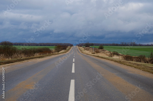 © Alexandr Milodan, Fototapeta premium empty road between two green fields