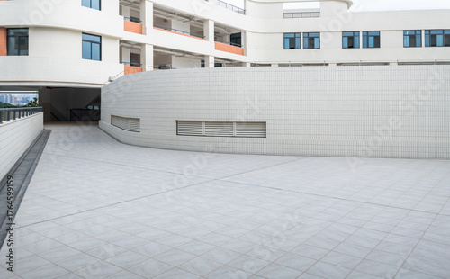 © xy, Naklejka premium Empty road by the school building