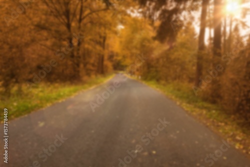 © vectorfusionart, Fototapeta premium Empty road by trees during autumn