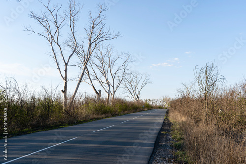Fototapeta premium Empty road, dried trees along the road