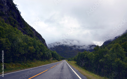 Naklejka premium Empty road in Norway on a clouded summer day