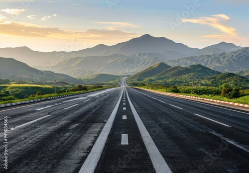 © yachyah, Fototapeta premium Empty Road Leading to Mountain Range