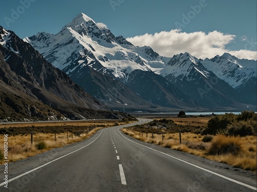 © claudunia, Fototapeta premium Empty road leading to New Zealand’s Mount Cook.