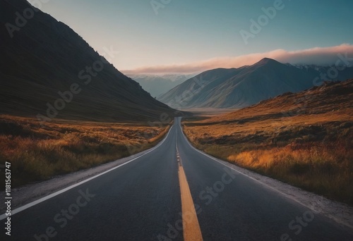 © Olexandr, Fototapeta premium empty road picturesque mountain landscape, realistic illustration