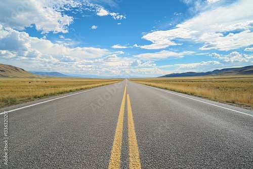© Imagine Stuff, Fototapeta premium Empty road stretches through rural landscape under blue sky with clouds
