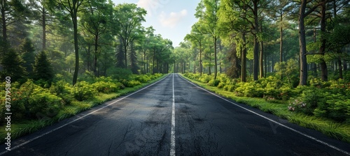 Obraz premium Empty Road Surrounded by Lush Green Forest