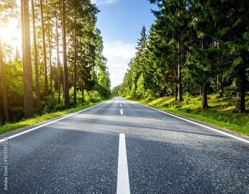 © MaulanaNusantara, Fototapeta premium Empty road through a pine forest