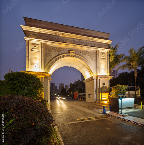 © zhu difeng, Fototapeta premium empty road through luxury architecure at night
