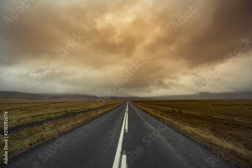 © accidentalchoice, Naklejka premium Empty Road to the Horizon in Iceland