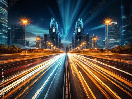 Obraz premium empty road with city background.