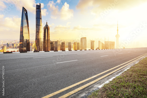 © zhu difeng, Obraz premium empty road with cityscape of modern city in cloud sky