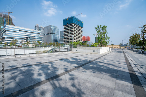 Fototapeta premium Empty road with modern buildings