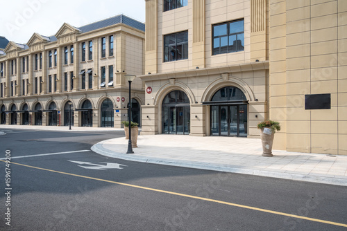 © zhu difeng, Obraz premium empty road with traditional buildings