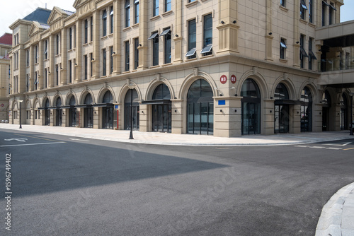 © zhu difeng, Obraz premium empty road with traditional buildings