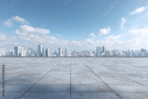 © Aulia, Fototapeta premium Empty rooftop overlooking a city skyline (2)