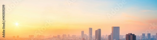 Fototapeta premium Empty Rooftop View, Cityscape in Sunset, Pastel Sky