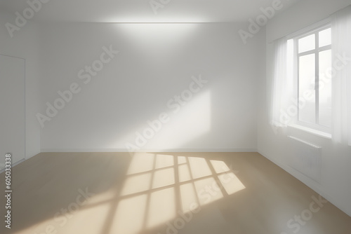 © Bogdan.Vision, Obraz premium empty room illuminated by the rays of the sun, presentation, advertising. Generative AI