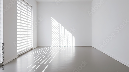 Fototapeta premium Empty room. Interior space, with shadows reflected by the bright daylight coming through the windows. Generative AI