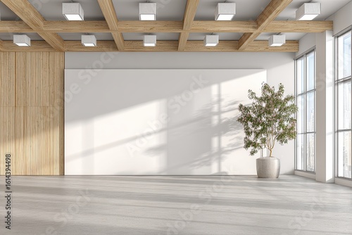 Fototapeta premium Empty Room Interior Sunlight Tree Plants
