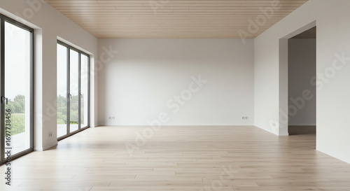 © Feri, Obraz premium Empty room interior with wooden floor and ceiling