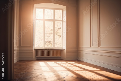 © Johannes, Obraz premium Empty room, light thing through, generative ai