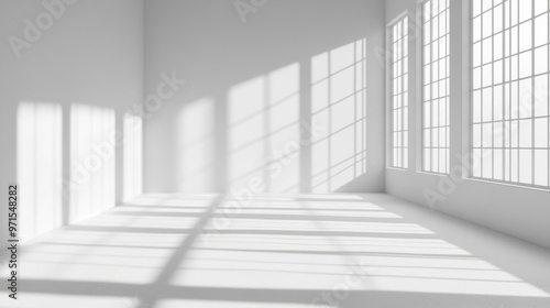 Fototapeta premium Empty room, shadow patterns on walls, white color, generative ai