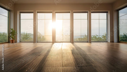 Obraz premium empty room sunlight streaming large windows