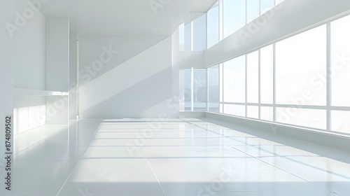 © Berkah, Obraz premium empty room wall and floor interior background, empty space, White room with light from a large window.