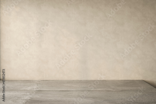 © leymandesign, Naklejka premium Empty room with beige wall and concrete floor. 3d Rendering
